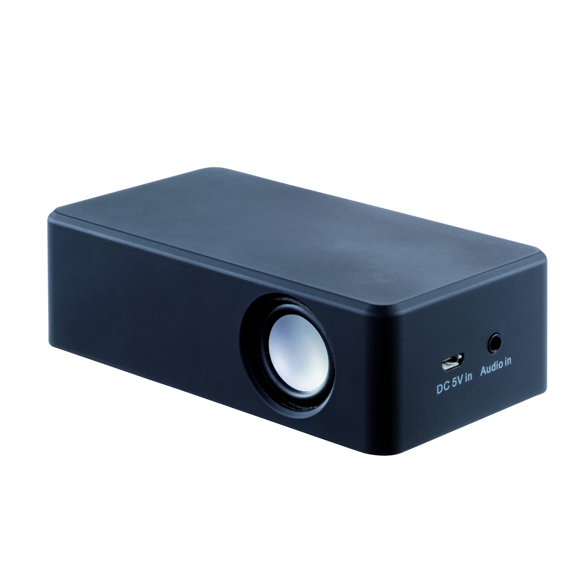Die Stromversorgung erfolgt wahlweise über drei AA-Batterien oder über den Micro-USB-Anschluss. Außerdem ist der Lautsprecher mit den Maßen 123 x 62 x 40 mm mit einem AUX-In-Anschluss versehen.