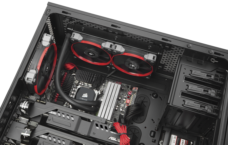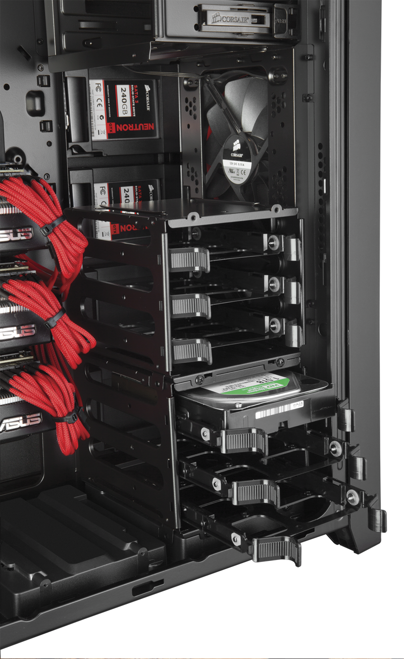 Das Obsidian Series 750D verfügt über eine stabile Verkleidung und bietet reichlich Platz für Ihre Hochleistungskomponenten und die modernen Kühlsysteme, mit denen Sie die optimale Leistung aus diesen Komponenten herausholen. Das 750D ist für den schnellen und einfachen Bau von Systemen konzipiert: Es verfügt über abnehmbare Seitenteile und auswechselbare Laufwerksschächte (ohne dass Werkzeug benötigt wird), spezielle abgedeckte Kabeldurchführungen und -Befestigungspunkte sowie eine CPU-Öffnung und Führungsstifte an der Rückseite der Hauptplatine.