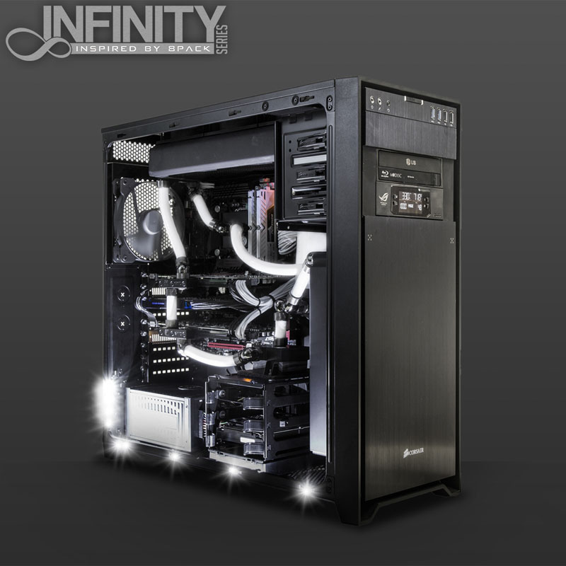 Genau wie die extremen 8Pack-Systeme wurde die Infinity-Serie für den absoluten Enthusiasten geschaffen. Die Computer ermöglichen somit ebenfalls ein atemberaubendes Performance-Erlebnis, allerdings bei einem deutlich niedrigeren Preispunkt. Zwar baut der Maestro nicht jeden Infinity-PC selbst zusammen, aber er hätte nicht seinen Namen dafür hergegeben, wenn bei der Fertigung nicht viele der hohen Standards, Prozesse und Komponenten berücksichtigt würden, für welche 8Pack selbst steht. Das heißt u. a., dass auch hier nur ausgewählte Prozessoren mit den erlesensten Komponenten gepaart werden, die der Markt zu bieten hat. Und zur überragenden Leistung eines Infinity-Rechners gesellt sich eine tadellose Optik mit perfekter Kabelverlegung und optimaler Feinabstimmung.