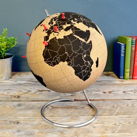 - Der „Kork“-Globus, mit dem man nicht nur sieht, wo man schon gewesen ist, sondern auch gleich seine nächsten Reiseziele festlegen kann.