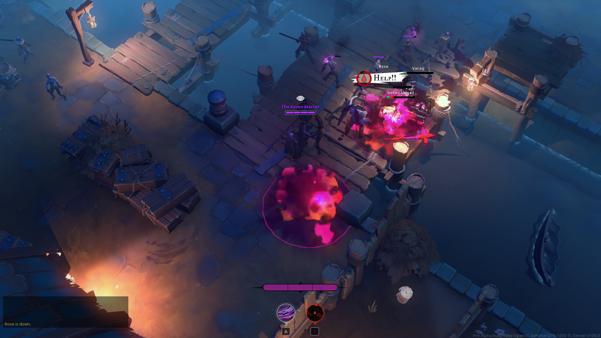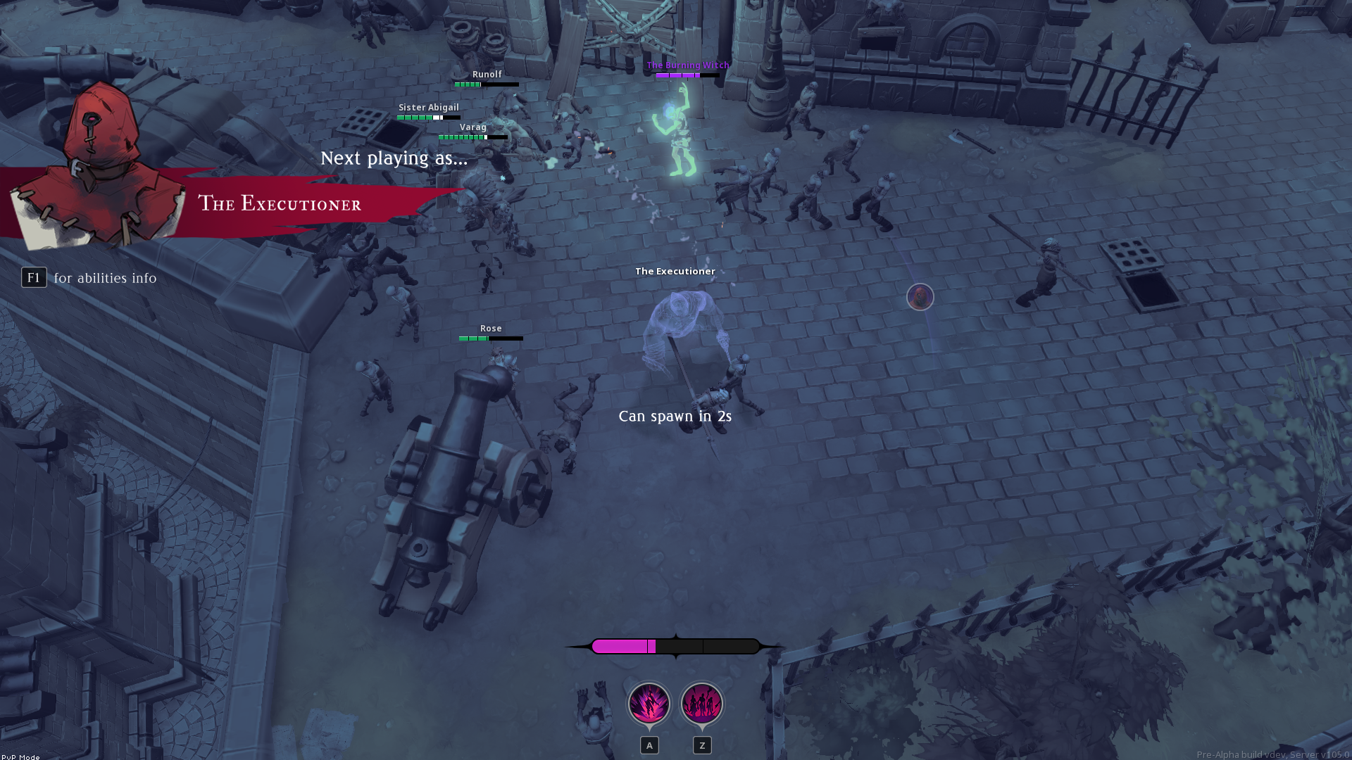 Darksburg bietet vier Überlebenden einen nervenaufreibenden Trip durch Zombiehorden, welche wir in schönster Hack-and-Slay-Manier niedermetzeln dürfen. Unser Charakter – wir haben uns für Runolf, den Wirt, entschieden – schägt einfallsreich mit einer mächtigen Schöpfkelle um sich und verteilt seine heilsame Suppe, um das Team auf den Beinen zu halten. Rose, die Bogenschützin, agiert lieber von hinten und bekämpft besonders effizient ausgewählte Ziele. Abgerundet wird das Roster durch Varag, den Werwolf, und Schwester Abigail, einer erstaunlich gewaltbereiten Nonne. Auf dem Weg durch Darksburg begegnen uns neben den regulären Zombies auch immer wieder Revenants – besonders starke Untote mit Sonderfähigkeiten, den Special Infected aus Left 4 Dead nicht unähnlich. Unter Verwendung unserer Standardangriffe, Fähigkeiten und den Ultimativen Fähigkeiten, welche sich durch das Verursachen von Schaden aufladen, kämpfen wir uns bis zu den Docks durch. Hier müssen wir die Fähre rufen – aber das zieht auch die Untoten an. In einem knappen Finale halten wir unsere Stellung, bis das Böötchen ankommt – doch trotz all unserer Mühen kommt nur ein einziger Überlebender durch. Ein Sieg, aber wenig befriedigend – wie dem auch sei, die Erfahrungspunkte erhalten wir trotzdem, denn Darksburg bietet ein Levelsystem. Dadurch lassen sich gewisse Vorteile freischalten, wobei das Hauptaugenmerk aber immer noch auf den eigenen Fähigkeiten liegt. Es juckt uns sofort in den Fingern, es noch mal zu versuchen, aber wir haben noch zwei Modi zu testen.