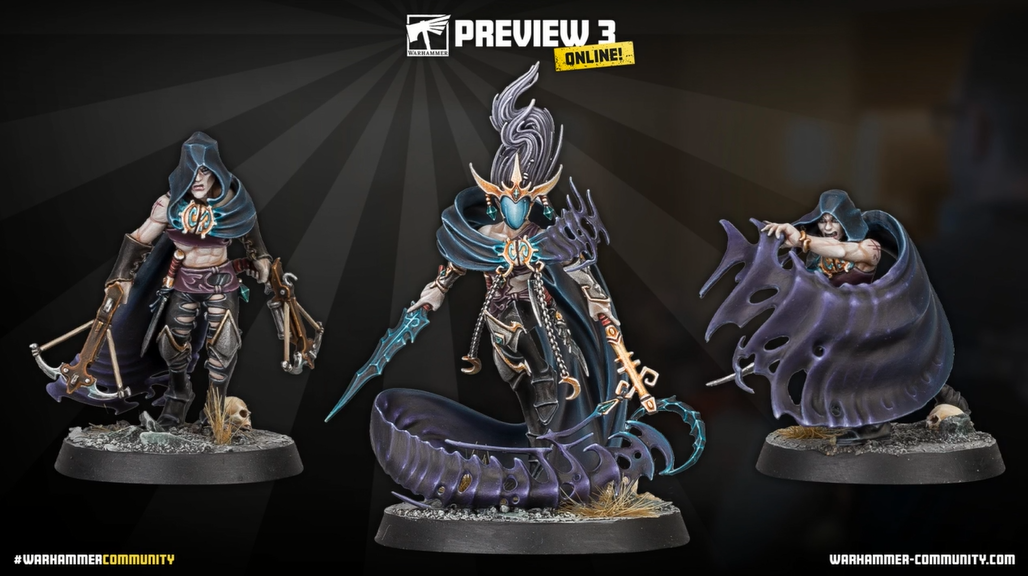 Und auch bei Warcry hat sich GW gedacht: “Eine neue Warband reicht uns nicht!” Die Dunkelelfen bekommen eine eigene Warband! Kein Regelupdate um einfach nur Figuren zu inkludieren und sich etwas zusammenzubasteln. Nein! Die ersten drei Figuren dürfen wir uns bereits anschauen und ganz ehrlich: Ich glaube ich habe nun tatsächlich meine Warband gefunden und GW hat mich am Hacken!