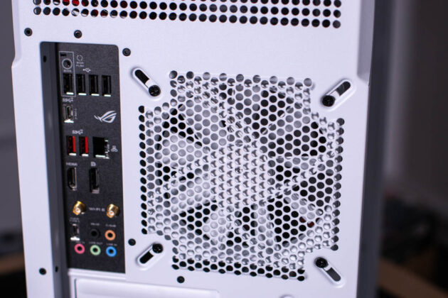 Das Front-Panel verfügt über alle notwendigen Anschlüsse. Bei den USB-Typ-A-Ports ist uns jedoch eine Kleinigkeit aufgefallen. Bei unserem Testmuster waren diese sehr schwergängig, sodass man sehr viel Kraft brauchte, um ein USB-Kabel einzustecken, aber vor allem auch auszustecken. Die Beleuchtung des Power-Knopfes und die HDD-LED haben eine angenehme Helligkeit.