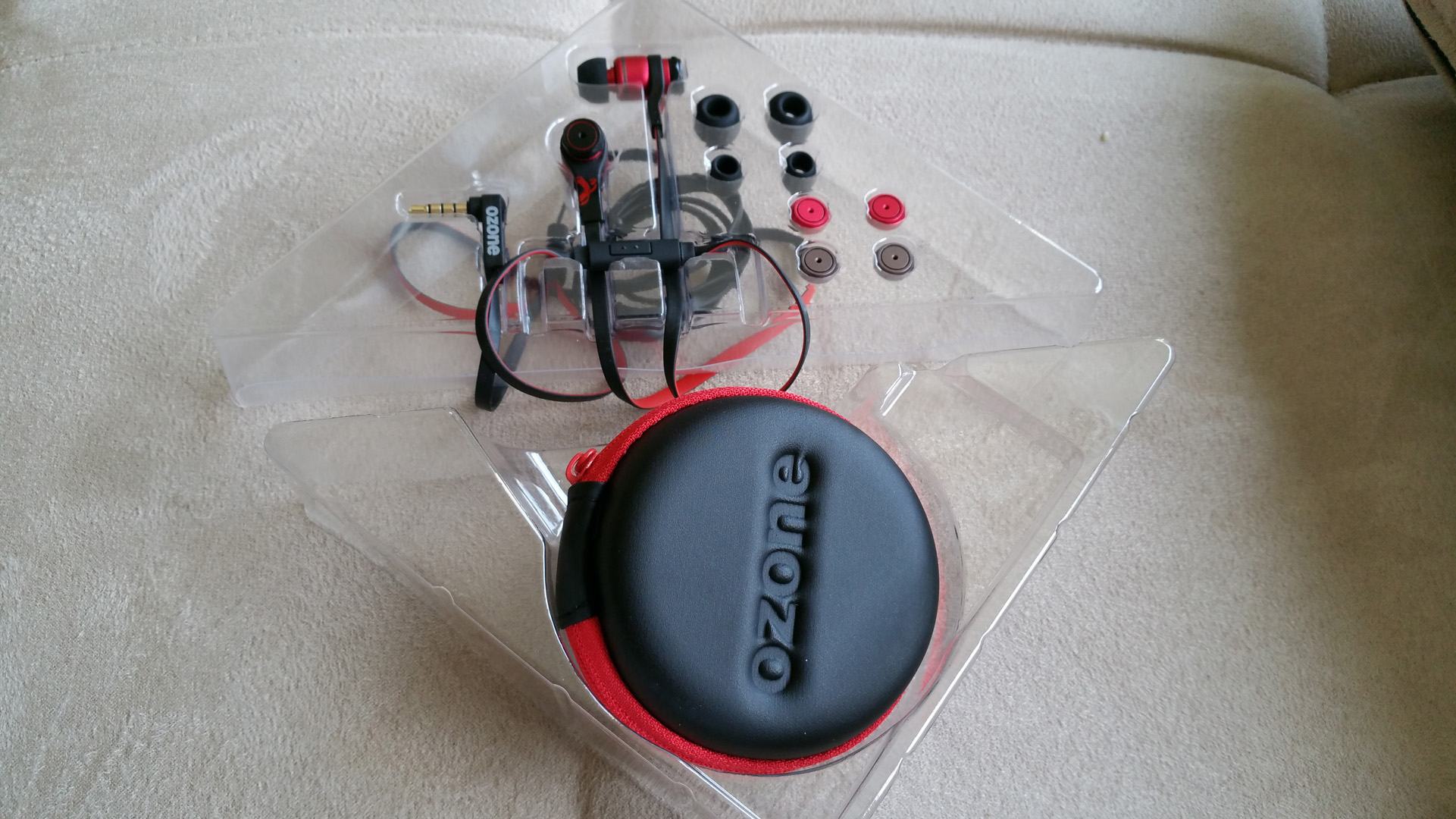 Das Ozone TriFX ist nun bereits seit einiger Zeit im Handel erhältlich und kann ebenfalls online bestellt werden.  Der aktuelle Preis liegt bei knapp 40 Euro. Bei diesem Preis ist es ein P1000466wahrhaftiges Schnäppchen unserer Meinung nach, da ihr wie gesagt nicht nur ein Headset mit einer Einstellung erhaltet, sondern gleich eines mit 3 Aufsätzen für mehrere EQ Bereiche. Positiv überrascht war ich von der Qualität der Aufschraub Plugs, da diese zum Glück nicht aus Plastik gefertigt worden sind. Etwas weniger gut kommt das integrierte Mikrofon für ptt herüber. Hieran muss man unbedingt arbeiten. Entweder rauscht es oder es brummt. Diese Funktion ist meiner Meinung nach nur für den absoluten Notfall geeignet. Selbst Headset Beilagen in Smartphone Verpackungen erreichen hierbei eine bessere Sprachqualität. Ebenfalls dazu kommt ein eher platt gedrücktes Kabel anstatt eines runden. Dies wiederum ist sehr schön, da es damit zu weniger Kabelbrüchen kommen sollte, so zumindest die Theorie.