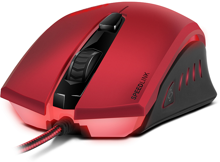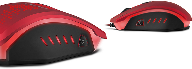 Wie die anderen Produkte der Reihe kommt die LEDOS Gaming Mouse mit dem schicken rot-schwarzen Design. Die Oberseite – bis auf das Maus-Rad und die DPI-Taste – ist in Rot gehalten, während die seitlichen Oberflächen in schwarz lackiert sind. Wird die Maus kurze Zeit nicht bewegt, leuchtet die Maus im 1-Sekunden-Takt rot auf. An den Seiten befinden Schlitze, die das Schwitzen und Abrutschen verhindern sollen, außerdem strahlt hier auch die rote Beleuchtung hin durch. Neben dem üblichen Maus-Rad kommt die LEDOS mit 5 Tasten daher – eine linke & rechte Maustaste, eine Sniper-, Doppelklick- und DPI-Stufen-Taste. Die DPI-Taste befindet sich wie bereits erwähnt auf der Oberseite, direkt unter dem Maus-Rad. Die Sniper-Taste – verlangsamt die eingestellte DPI auf 500, solange diese gedrückt ist – liegt auf der linken Seite, die Doppelklick-Taste – die wie der Name schon sagt, ein Doppelklick ausführt – sitzt auf der rechten Seite. Die LEDOS Gaming Mouse kostet ca. 20 €.