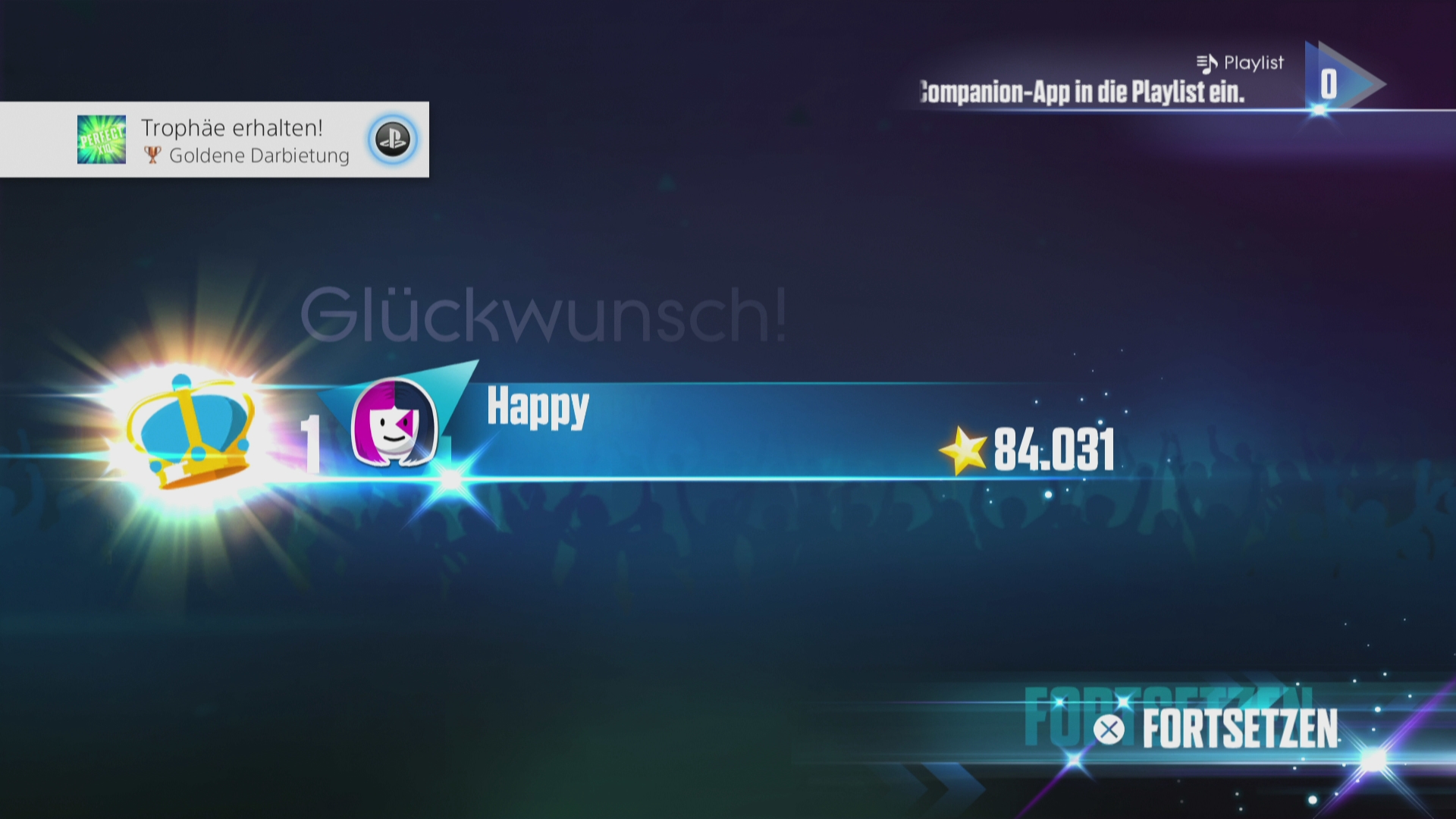 Habt ihr nun einen oder mehrere Titel ausgewählt, könnt ihr am stationären TV oder Monitor entscheiden, ob ihr jeweils nur Ausschnitte oder Titel in voller Länge haben wollt. Pluspunkte gibt es hierfür, dass eine Playlist auch mit nur einem Titel abgespielt wird und nicht erst mit mehreren.