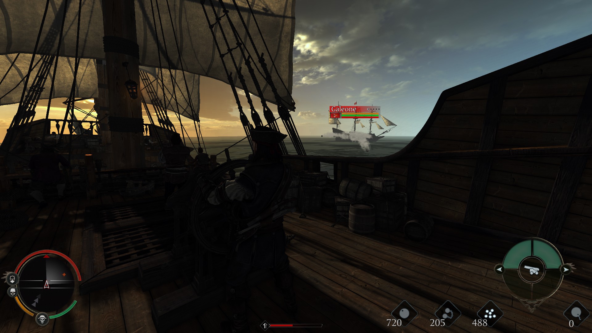 Hier ist etwas Taktik gefragt, denn gegen mehrere Schiffe hilft auch das größte Schiff nicht viel. Feindliche Schiffe können nicht nur versenkt werden, sondern auch geentert werden. Hier landen wir aber in einem rundenbasierten Spielmodus. Hier hängt unser Erfolg von unserer Mannschaft ab. Je größer und motivierter sie ist, desto größer die Chance das Schiff erfolgreich zu entern. War der Entervorgang erfolgreich, können wir entscheiden, was mit dem Schiff passiert: wir können es niederbrennen oder auf See treiben lassen. Ladung, sowie die Mannschaft des anderen Schiffes können wir für uns beanspruchen, um später damit Handel zu treiben.